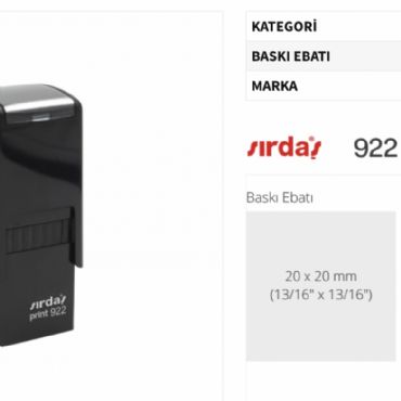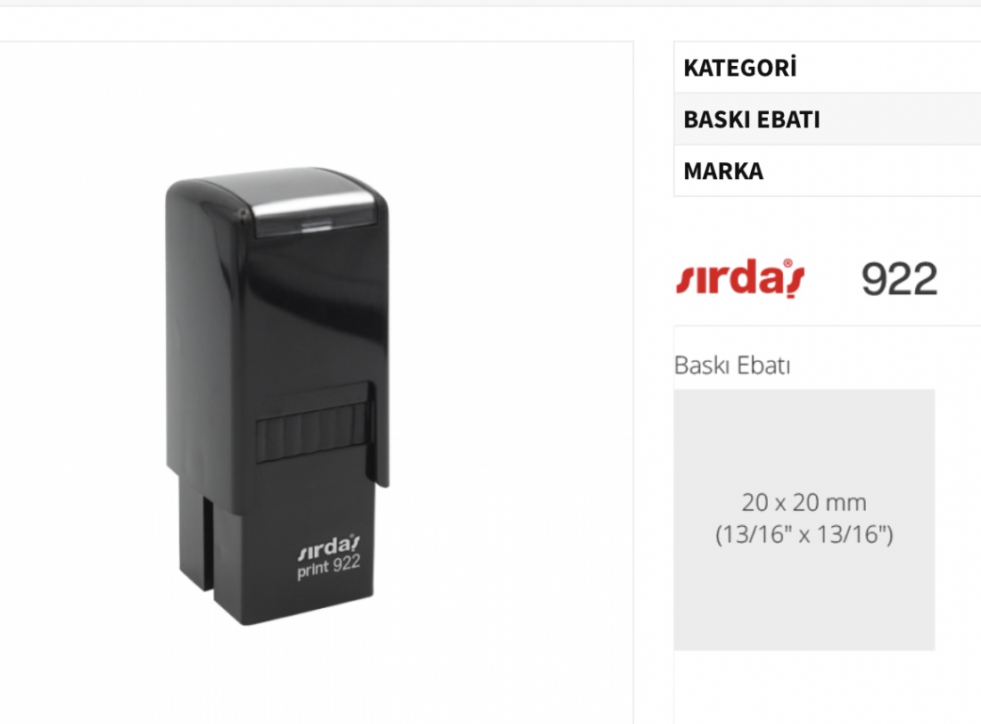 Baskı Boyutu: 20 x 20 mm kare kaşe