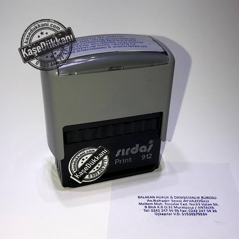 Avbukatlar için kaşeleri Sırdaş marka 911 kod numaralı kaşe ile yapmaktayız. Dilerseniz sitemizde bulunan diğer markalardan da seçim yapabilirsiniz. Aşağıda örneklerini görebileceğiniz çeşitlilikte baskı tasarımları kullanılabilmektedir.