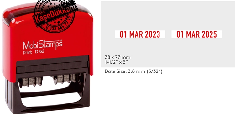 MobiStamps Çift Tarihli Kaşe D62 - 77 x 38 mm