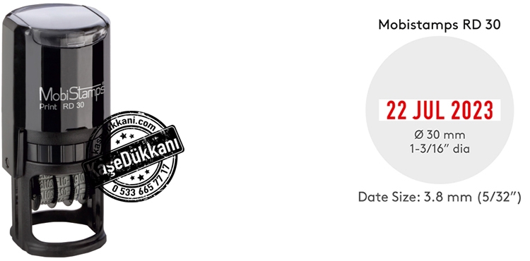MobiStamps Yuvarlak Tarih Kaşesi RD30 - Çap: 30 mm