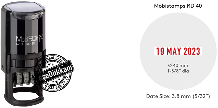 MobiStamps Yuvarlak Tarih Kaşesi RD40 - Çap: 40 mm